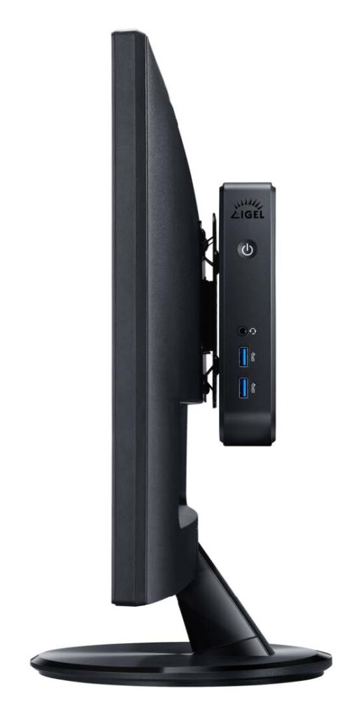 Trotz der vielfältigen Anschlussmöglichkeiten bildet der Client eine insgesamt schlanke Optik, und lässt sich mit der mitgelieferten VESA-Halterung leicht in der Arbeitsumgebung montieren.