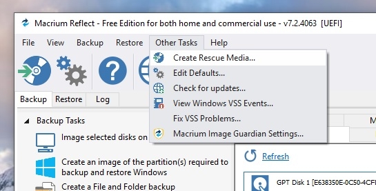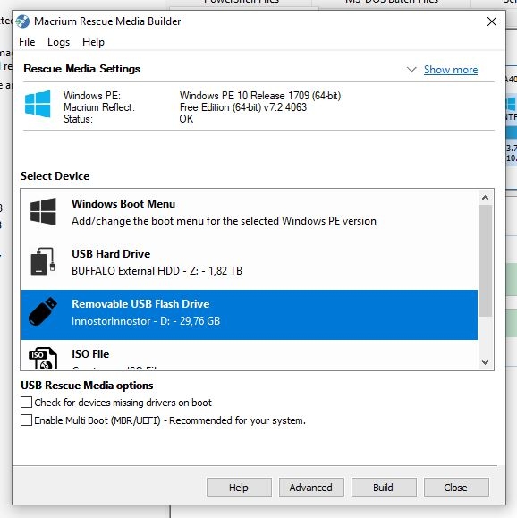 Sie müssen Sie entweder auf einem Windows Desktop machen oder auf einem Windows Laptop. - Erstellen Sie mit Macrium Reflect Free einen USB-Stick (https://www.macrium.com/reflectfree)